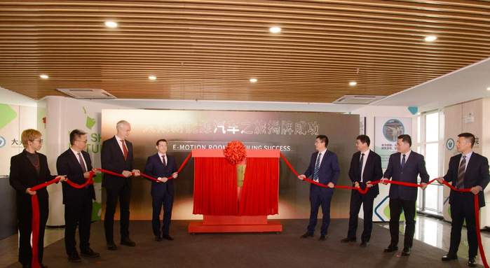 活动现场,嘉宾们为新能源汽车之旅体验中心揭牌。