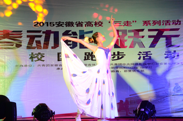 11月28日晚,我校二区风雨门球场乐声阵阵,热闹非凡。由共青团安徽省委员会、安徽省体育局、共青团中央网络影视中心和安徽省学生联合会主办,合肥学院团委及Morning up学社承办的校园跑步活动开幕式晚会成功举办。我校团委副书记杜娟、Morning up学社指导老师谢广平等应邀出席,近两百余名学生参与晚会。