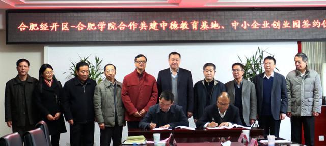 在双方友好协商的基础上,双方就中德教育示范基地和中德中小企业创业园项目达成一致意见,张文兵和杨伟共同签署了《合作共建中德教育示范基地和中德中小企业创业园框架协议》。协议旨在落实李克强总理视察合肥有关指示精神,服务经开区“调转促”发展战略,按照合肥市政府对德合作专题会议纪要关于经开区要利用合肥学院等创新资源,“加快建立‘中德中小企业创业园’,打造‘大众创业、万众创新’合作示范平台以及中德青年交流合作基地”的要求,深化经开区、合肥学院与德国在科教、经贸、产业领域的交流合作,通过多种形式,共同合作推进中德教育合作示范基地建设,搭建中德企业合作创新平台。