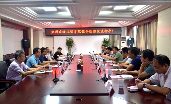 会上,丁明从发展历程、专业设置、办学特色等方面简要介绍了我校的整体情况,并对三明学院的来访表示热烈欢迎。张宇建对我校党建工作进行了基本说明,目前我校党总支建设遵循求真务实的态度,围绕思想作风、规章制度等方面开展了一系列工作来加强教职工和学生党员的思想政治教育,例如创新利用微信等新媒体平台、办党校开党课、学风建设六大工程等。王政对我校党建工作科学化保障应用型人才培养模式的改革与升华给予了充分肯定,希望此后两校能加强联系,促进共同发展。