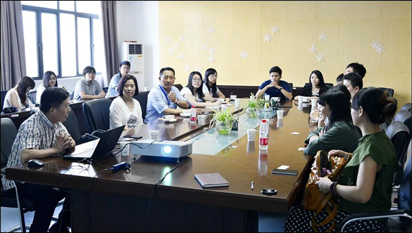 8月13日,合肥迅达印务印务有限公司总经理丁军、安徽工商管理学院社会实践部部长田啸部长、合肥冰利商业空间设计有限公司张玲经理一行带领15名台湾云林科技大学企管系硕士研究生到合肥学院艺术设计系产学研中心参观、学习和交流。