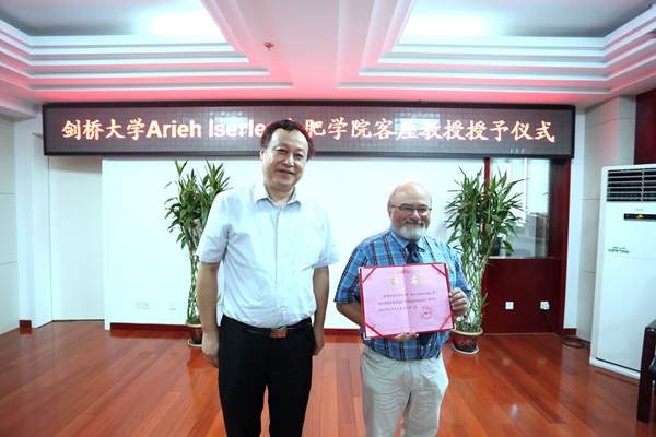 8月16日,英国剑桥大学应用数学和理论物理系教授、分析中心主任Arieh Iserles受聘我校客座教授。南京大学数学系教授吴新元,剑桥大学博士Marcus Webb,合肥学院党委书记蔡敬民出席这次聘任仪式,人事处处长陈爱娟、科技处副处长汪潘义、数理系党总支书记童玉松、数理系主任牛欣与数理系师生共同参与了此次仪式。