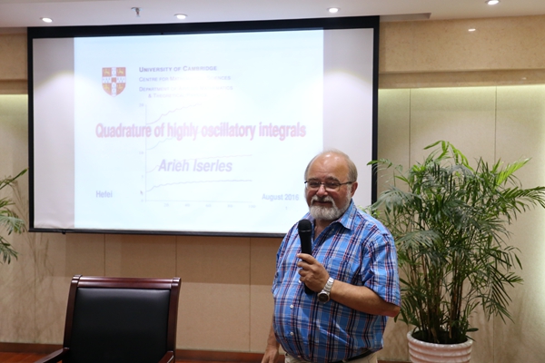 据悉,Arieh Iserles教授是国际著名数值分析学家、剑桥大学终身教授、国际著名期刊《Acta Numerica》,《Foundations of Computational Mathematics》,《IMA Journal of Numerical Analysis》的主编,以及国际著名计算数学期刊《Numerische Mathematic》, 《Advances in Computational Mathematics》的编委,在高振荡数值分析、微分方程的数值解法、几何数值积分、逼近论等领域的研究和创新方面做出了卓越的贡献。