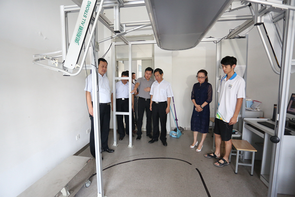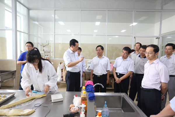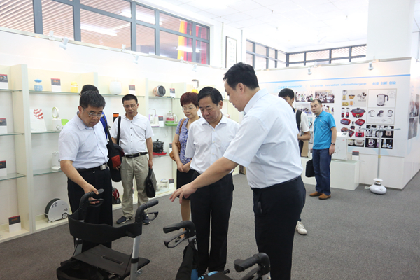 杨思松一行在蔡敬民、洪家友等陪同下,参观了我校中德共建合肥学院三十周年成果展,实地查看了校体育馆和部分实验室。在生物系食品专业实验室,杨思松主席听取了食品生产、制造各个环节的详细介绍,品尝了学生自己制作的糕点和啤酒。在艺术系主任谢海涛、计科系主任王晓峰引导下,杨思松一行先后参观了我校学生与安徽深装合大工业设计有限公司共同设计研发的产品展示、我校大学生创新基地。