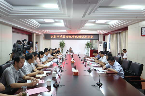 8月24日,合肥市政协主席杨思松、市政协秘书长袁文长等一行来校调研合肥学院办学情况,看望住合肥学院市政协委员,听取委员意见和建议。我校党委书记蔡敬民、纪委书记洪家友、副校长陈秀及相关职能部门负责人陪同调研。