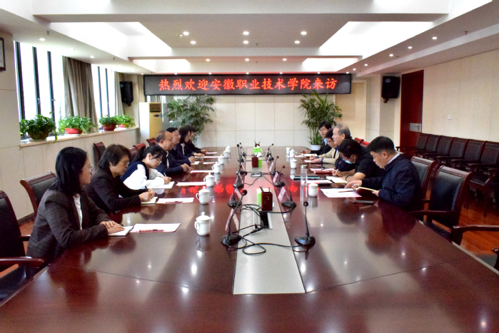 5月9日,安徽职业技术学院党委书记李方泽等来我校调研,我校在行政楼第九会议室召开调研座谈会,党委书记王其东出席并主持会议,党政办、宣传部、学生处、马克思主义学院等相关部门负责人参加会议。