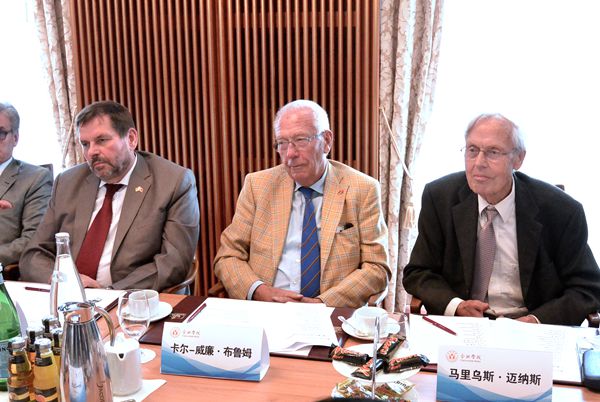会议由我校党委书记蔡敬民主持。蔡敬民首先向代表团介绍了座谈会举办背景及参会人员。座谈中,各位德国代表分别发言。来自雅德大学的迈纳斯教授及来自奥斯纳布吕克应用科学大学的布鲁姆教授作为老专家、老教授代表,回顾了合肥学院中德共建初期的合作往事,对合肥学院近年的发展表示异常欣慰,对自己当初投身合肥学院建设的选择感到自豪,并对安徽省提供此次回顾往昔、老友重聚的机会表示感谢,对在场的合肥学院德国年轻一代专家教授投身中德教育合作示范基地建设寄语了期待和鼓励。来自马格德堡应用科学大学的华裔教授丁永健期待该基地建设过程中应做好人才保障,作为德国华人教授协会副会长及我校客座教授,愿意积极推动合肥学院基地在德国的宣传,特别是协助其在德人才引进的推介。来自施特拉尔松德应用科学大学的霍恩教授作为德国大学校长,就基地建设来自德国教育主管部门方面的支持,给予了实质性的建议。德国大陆集团轮胎事业部副总裁科勒博士,作为校企合作代表,期望由我校、德国埃姆登/里尔应用科学大学及德国大陆马牌轮胎有限公司共建的“大陆班”——中国首个双元制高等教育专业能顺利执行,并为合肥学院基地建设及中德应用型高等教育合作增添更加创新的一抹色彩。来自于我校04无机非金属专业、目前在克劳斯塔工业大学就读博士的张孟同学等四名我校在德留学生、毕业生代表,介绍了自己就读合肥学院及德国高校,以及在德国企业和研究所实习、工作的经历,希望家乡政府和学校继续关注自己学生的成长,并希望能够尽快建立合肥学院留学校友网络系统,有效集中留德校友的力量和资源,更多为母校、为家乡做贡献。