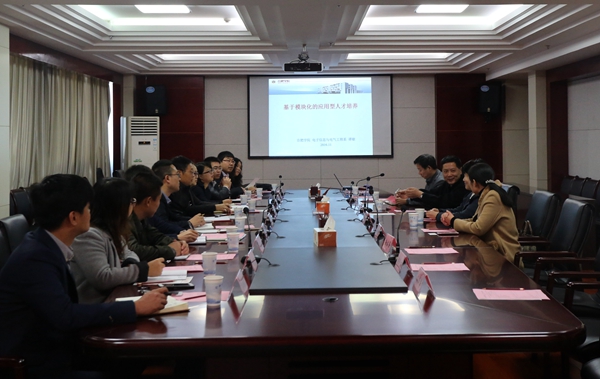 刘建中就模块化教学指出,改革需要教和学的统一,打破学科定式,从人才输出的角度,打造“双能”教师。他表示,人才培养建设要服务地方经济社会发展,从而促进发展的良性循环。最后,谭敏以电子系为例,结合德国的教学模式以及我校学子第二课堂的创新实践成果,阐述了我校模块化课程体系的构建思路以及在人才培养中的重要作用。白义香从我校各个阶段的发展状况、应用型人才培养模式改革等方面介绍了我校的整体情况。
