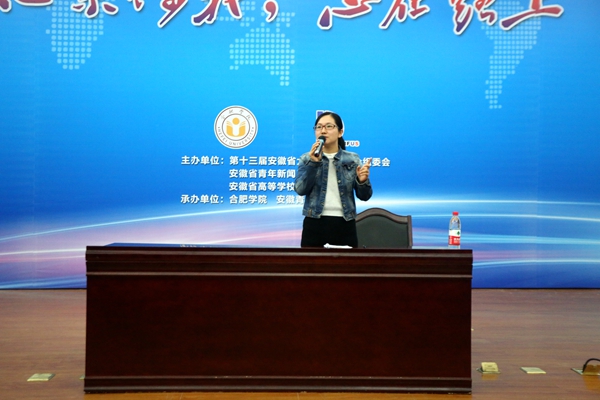 开幕式结束后,新安晚报资深记者钟虹作了关于“推陈出新,论新媒体时代下的纸媒发展”专题讲座,她分别从转变观念、全媒体融合、内容为王、加强互动四个方面讲述了新媒体时代的特征。各高校学生代表就自己感兴趣的话题同与会社会媒体进行交流。