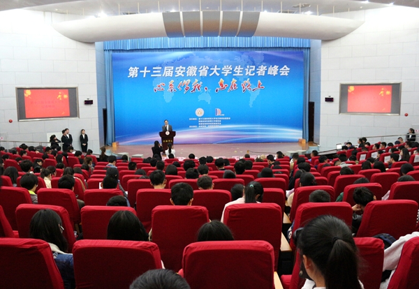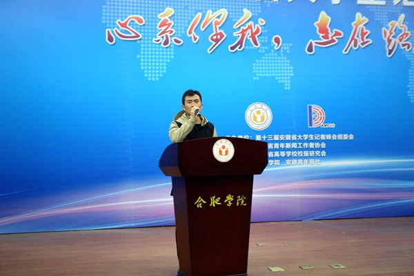为进一步发挥学生记者的作用,调动广大学生记者做好新闻宣传工作的积极性和主动性。11月6日,值我国第十七个记者节来临之际,由安徽省大学生记者峰会组委会、安徽省青年新闻工作者协会和安徽省高等学校校报研究会联合主办,合肥学院、安徽青年报社联合承办的第十三届安徽省大学生记者峰会于图书馆报告厅举行。来自全省50余所高校的400余位校媒记者齐聚合肥学院,围绕“心系你我,志在路上”这一主题,共同探讨新形势下的校媒发展之路。大会由合肥学院党委宣传部部长刘樟树主持。