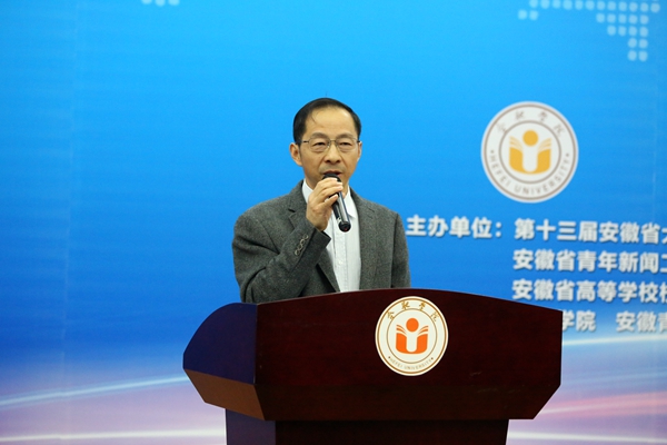 合肥学院纪委书记洪家友在讲话中指出,我校自成立以来,坚持“应用型”的办学定位,坚持改革与创新,在借鉴德国应用科学大学办学经验的基础上,围绕应用型人才培养关键要素,构建了具有鲜明特色的应用型人才培养体系。他回顾了去年金秋十月两国总理来访我校的情景,李克强总理提笔“三十而立、卓有成效、根深叶茂”赞扬中德合作共建合肥学院三十年成果,学校将贯彻落实李克强总理指示精神,以“中德教育合作示范基地”建设为契机,加快地方应用型高水平大学建设,加快地方高校的转型突围。同时,他强调,安徽省大学生记者峰会活动内容既积极融入了合肥学院“地方性、应用型、国际化”的办学定位,也构建了一个安徽省大学生接触社会、参与实践、表达情感、展示自我、提高综合素质的广阔平台,为“热爱生活、热爱校园、热爱新闻”的青年人提供了学习实践交流的场所。最后,他寄语记者峰会,希望全省高校共同努力打造出属于大学生记者的思想文化盛宴。