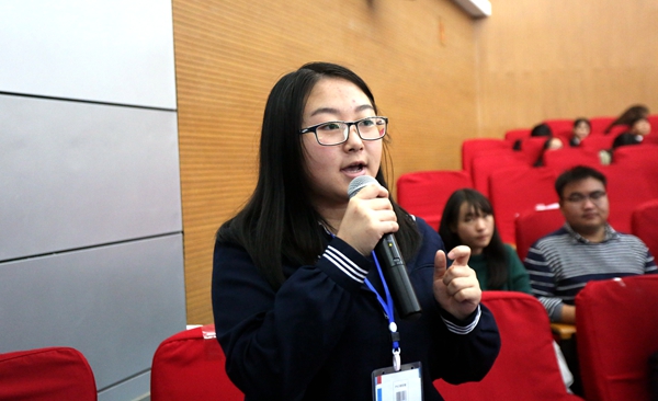 随后,她围绕“网络辟谣”、“深度调查”、“服务新闻”、“热线出击”四个方面着重强调新闻“内容为王”的重要性,以工作中经历鼓励广大校媒代表要勇于探索新闻深度,挖掘新闻背后的真相。最后,她主动分享工作经验并表示,“加强互动”将是纸媒不余遗力完善自我的新方向。讲座收尾之际,她向广大校媒代表意味深长地提出寄语,传统媒体不是被新媒体逼入绝境,而是要利用好新媒体这个工具,只有专业的编辑记者才是高质量新闻的保障。之后,她热情地与来自安徽大学、合肥学院、皖南医学院等各地代表展开提问交流,积极为他们答疑解惑,收获了雷鸣般的掌声。