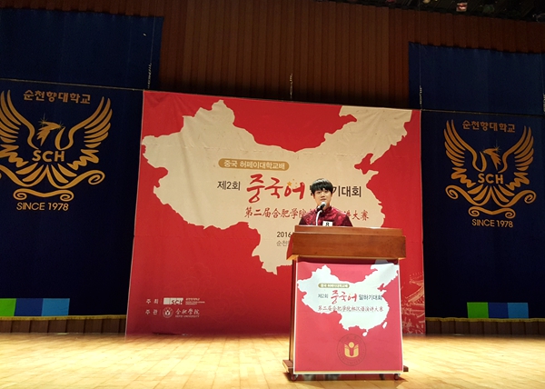 “合肥学院杯汉语演讲大赛”是由合肥学院主办,韩国顺天乡大学协办的全国性汉语演讲比赛。比赛目的旨在鼓励韩国青年提高汉语的实力,了解中国的文化,加深对中国的感情,为两国年轻人搭建起航梦想的舞台。与首届比赛相比,此次比赛在韩国影响更广,积极扩大了合肥学院在韩国的知名度,必将吸引更多的韩国学生来合肥学习发展。
