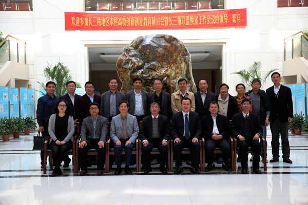 2016年11月18日在上海应用技术大学奉贤校区图书馆召开长三角联盟换届暨创新创业教育研讨会,上海市教委高教处、安徽省教育厅高教处、长三角联盟各牵头校及联盟秘书处出席了会议,会议由上海应用技术大学副校长叶银忠主持。