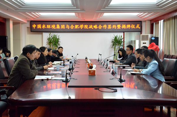 陈怀指出中国水环境集团是一个在水处理方面专业性很强的投资运营管理服务平台,在水环境综合治理、供水服务、污水处理等领域具有强大的综合实力。集团许多工作与合肥学院的办学宗旨高度契合,中国水集团扎根安徽、立足合肥,通过校企合作模式,充分发挥双方优势,为学生提供良好的学习和实践平台,为安徽省暨合肥市经济建设添砖加瓦。中国水环境集团会采取各种措施,不断提高合作层次,扩大合作范围,挖掘合作潜力,为双方合作的加深和巩固提供力所能及的支持。