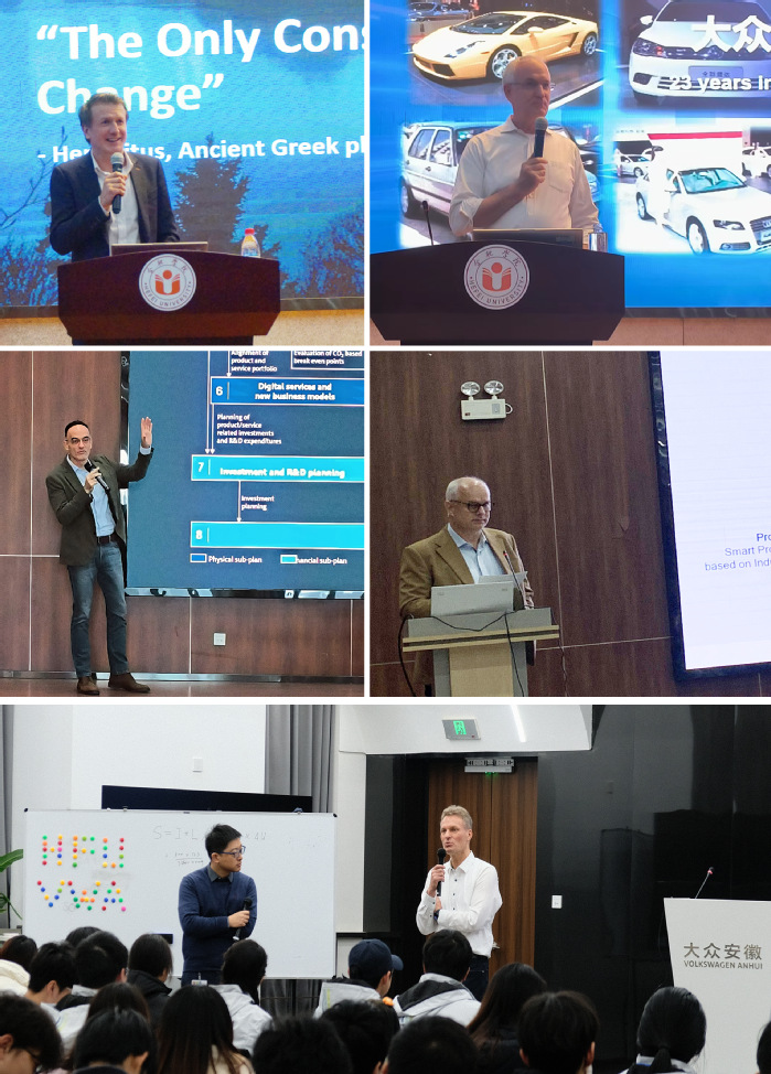 Im ersten Semester des akademischen Jahres 2023-2024 hielten das Volkswagen College und Volkswagen Anhui gemeinsam fünf theoretische Vorlesungen und kognitive Praktikumsaktivitäten für Gastprofessoren von Unternehmen ab. Dr. G. Wandi, Gastprofessor von Volkswagen Anhui und CEO von Volkswagen Anhui, Dr. Hayogen, Chief Financial Officer, Dr. Lu Ermann, Chief Technology Officer, Herr Gao Lefu, Chief Digital Officer, und Herr Schneider, Chief Manufacturing Officer, hielten gemeinsam wunderbare Vorträge für die Studierenden.