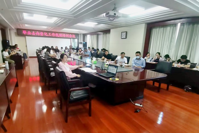 为确保2023届高校毕业生稳妥有序毕业,6月8日下午,教育部高校学生司会同学生服务与素质发展中心召开全国高校毕业生毕业去向登记工作培训视频会。教育部学生服务与素质发展中心副主任唐小平、教育部高校学生司就业处处长周国良出席视频会议并作重要讲话。我校在九楼东会议室设分会场,相关部门工作人员及全校2023届毕业班辅导员、班主任、就业工作联络员参加培训。