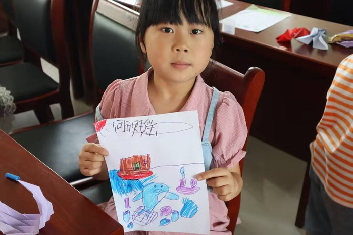 团队成员通过播放纪录片,让小朋友们感受到父母的辛勤付出和无私的爱。小朋友们用绘画的形式表达对父母的感激,五彩斑斓的画笔绘出了他们无限的感恩与爱。志愿团还开展了防溺水安全宣讲,详细讲解了水上安全的重要性以及常见的溺水事故原因,帮助他们学习正确的自救技巧,现场还开展了实践演练,增强他们对自救技巧的全面认识。“中国式现代化是人与自然和谐共生的现代化”。志愿团通过播放《一条鲸鱼的尾巴》保护环境宣传片,对小朋友们进行生态保护教育,让他们深刻认识到生态保护的重要性。