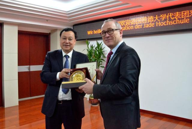 Am 10.12. 2016 empfang Prof. Dr. Jingmin Cai, Parteisekretär der Universität Hefei, im Besprechungsraum vom 8. Stock im Verwaltungsgebäude Herrn Prof. Dr. Manfred Weisensee, den Präsidenten der Jade Hochschule, und Frau Andrea Menn, Leiterin International Office der Jade Hochschule. Beide Seiten führten ein erfolgreiches Gespräch über Fortführung der Zusammenarbeit,neueKooperationen, Forschungszusammenarbeit und Programm des BMBF „Ausbau der Chinakompetenzen“. Nach dem Gespräch besichtigten die deutschen Gäste die Ausstellung vom 30jährigen chinesisch-deutschen Aufbau der Universität Hefei.