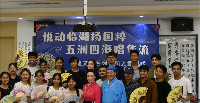 8月3日下午,我校18名国际学生应邀参加由临湖社区新时代文明实践所、临湖社区海外人员服务站、冠志社会工作服务中心与我校共同举办的“悦动临湖扬国粹,五洲四海唱华流”非遗文化系列活动之黄梅戏文化交流活动。