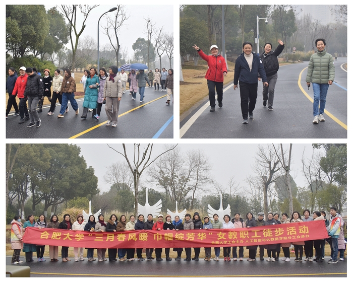 3月5日下午,校工会主办、人工智能与大数据学院分工会承办的“三月春风暖 巾帼绽芳华”女教职工徒步活动在南艳湖公园举行。活动中,女教职工们精神饱满、步伐矫健。大家一边欣赏着沿途的风景,一边交流着工作和生活的点滴,气氛温馨而和谐。