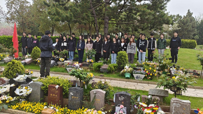 缅怀英雄先烈,传承奉献精神。清明节到来之际,校团委、学生处带领青马班学员前往大蜀山文化陵园深切悼念我校优秀扶贫干部朱世群同志。在朱世群同志的墓碑前,青马班学员被朱老师的先进事迹深深感动,学员孙静涛说:“朱老师是我们身边的英雄,是我们学习的榜样,他用生命书写忠诚、用奉献诠释追求、用行动践行誓言,诠释了新时代共产党员的初心和使命,他的精神将永远激励着我们前行。”师生集体鞠躬默哀,依次敬献鲜花,寄托追忆与不舍。